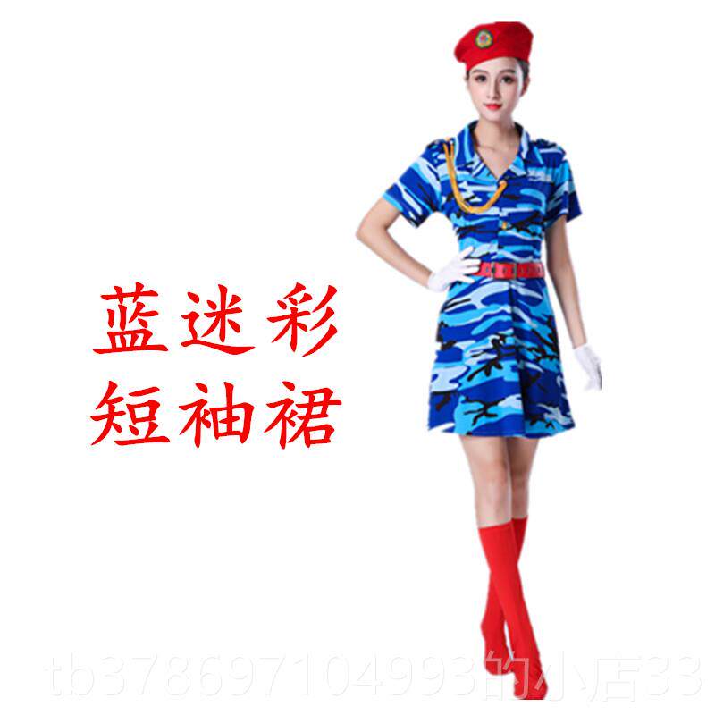 成人水兵连衣裙表演服打鼓迷彩裙广场舞军装演出短袖款女兵舞蹈服