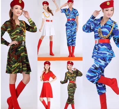 新款军鼓水兵舞舞蹈服演出服成人迷彩表演服女兵舞蹈广场舞服军装