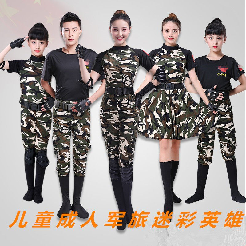新款军旅水兵迷彩英雄成人舞台演出服女兵舞蹈服儿童野战军训服装