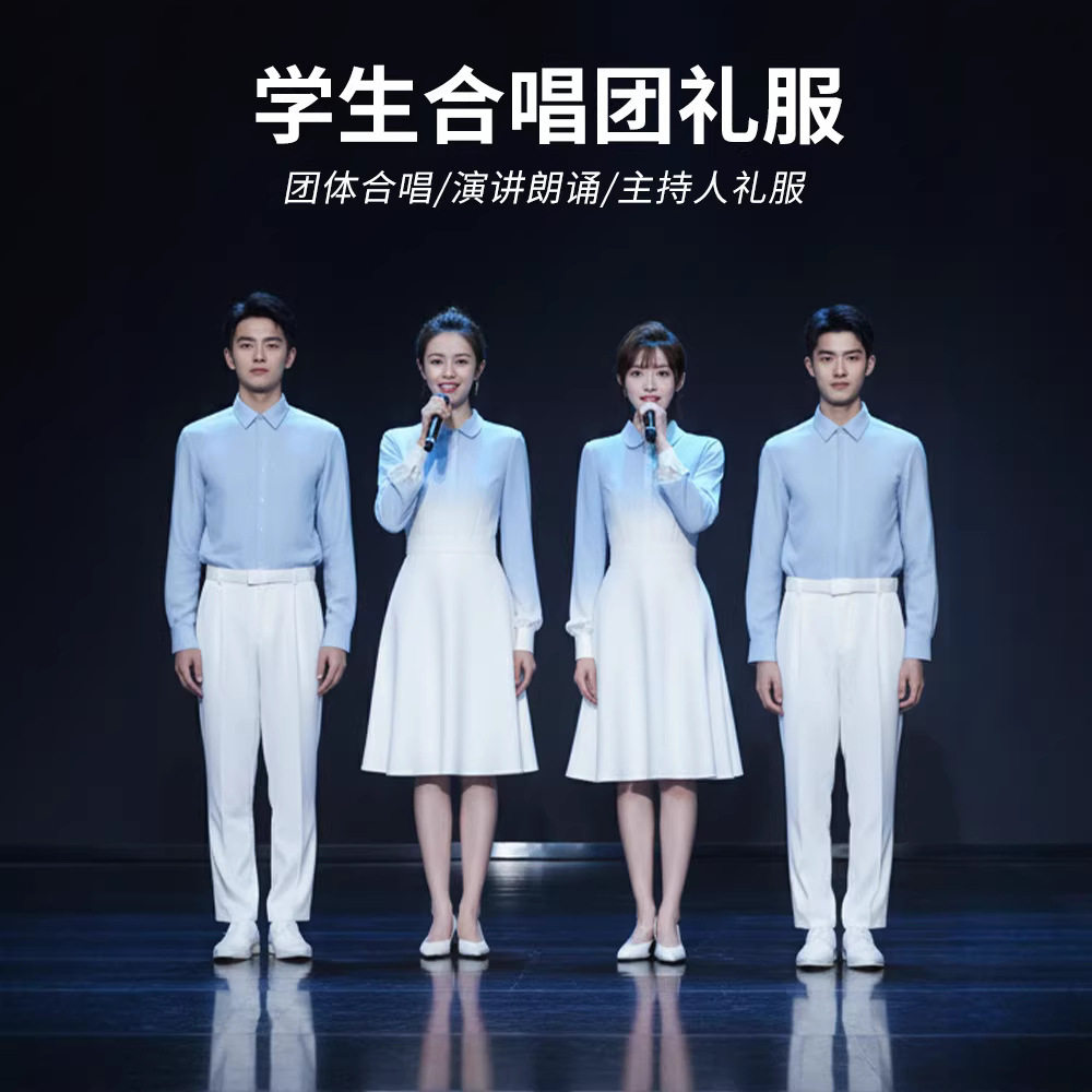 初高中学生成人蓝色爱国合唱团诗歌朗诵比赛演出服演讲服装班服女