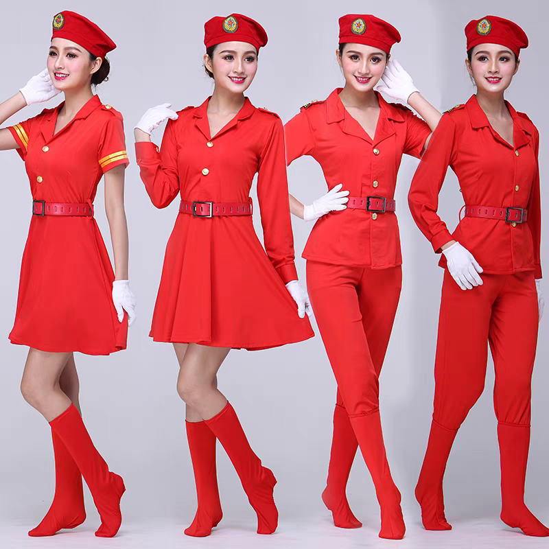 成人舞蹈服演出服装军鼓服军装女款迷彩裙女兵服装广场舞军装迷彩