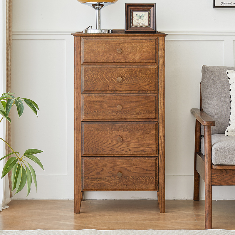 北美红橡木五斗柜客厅收纳柜小户型卧室杂物储物柜黑胡桃木可定制