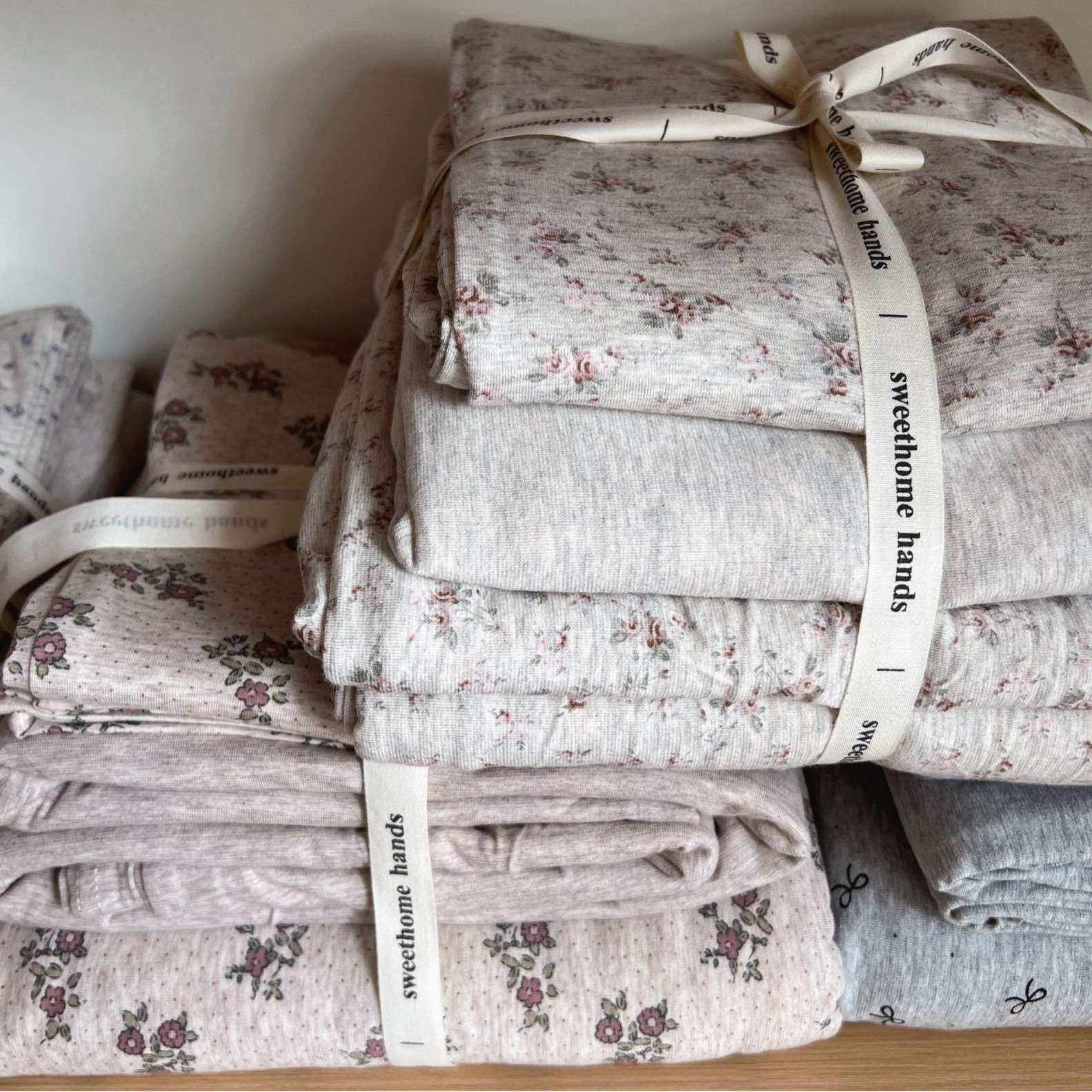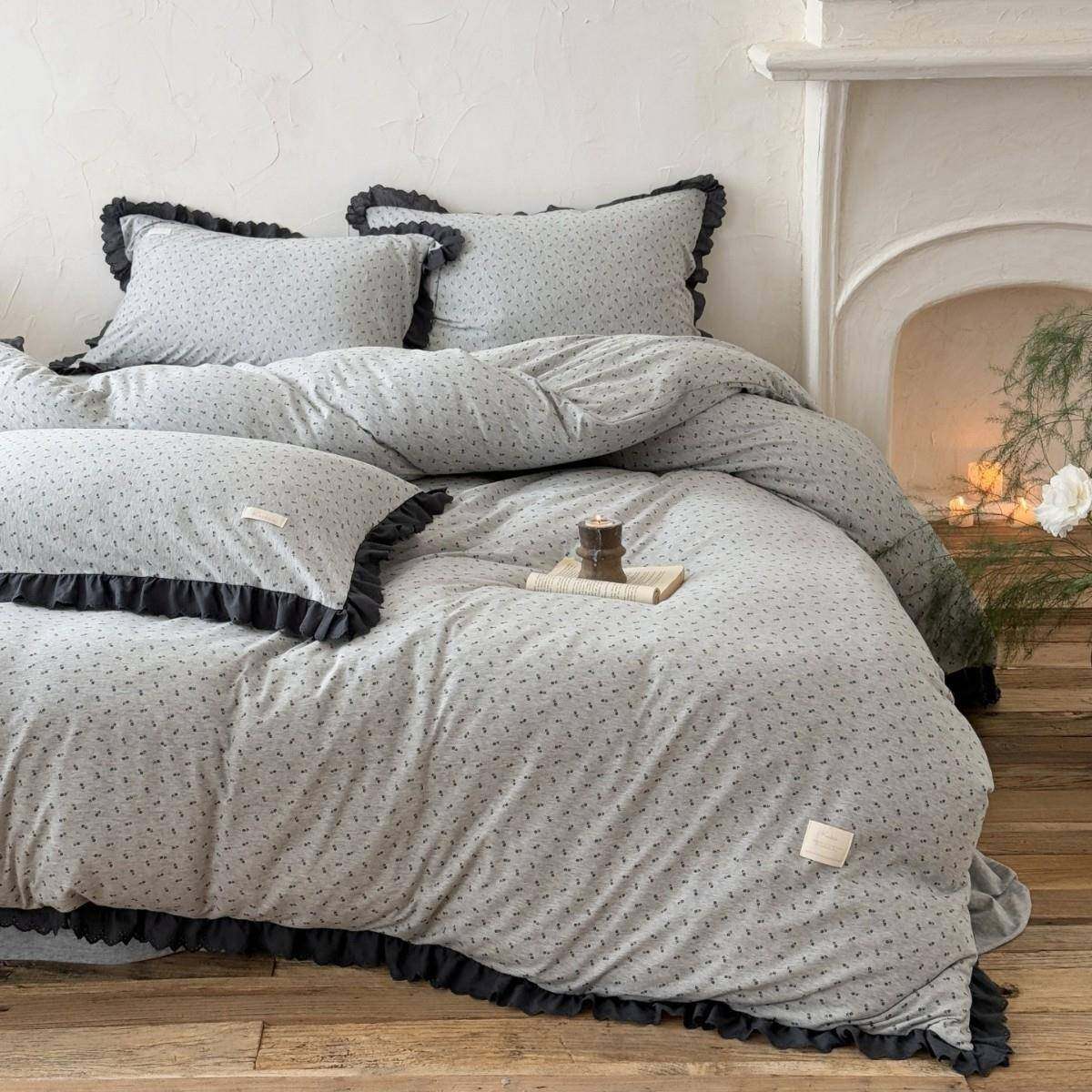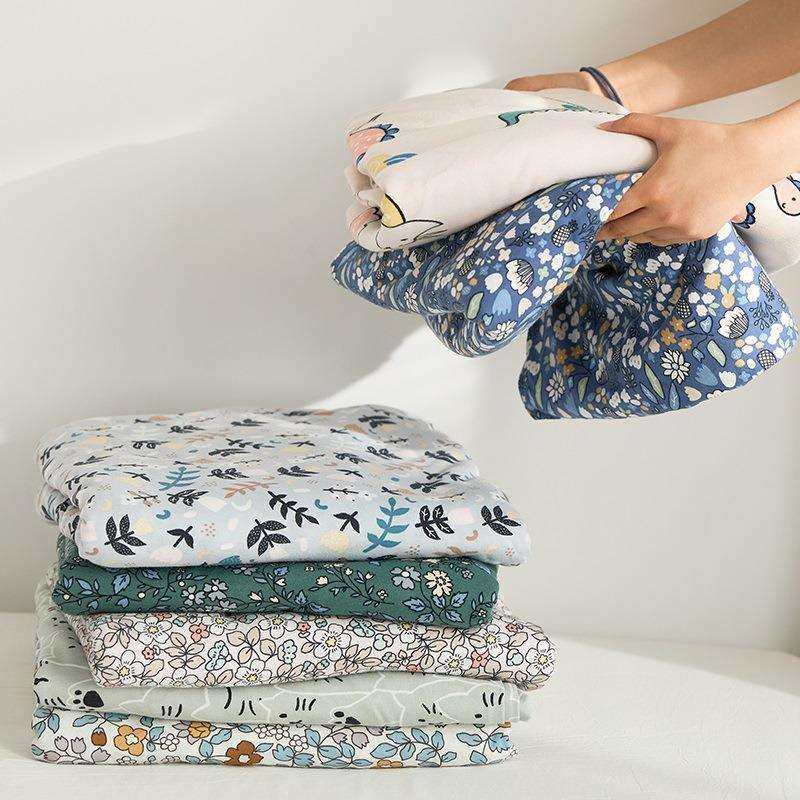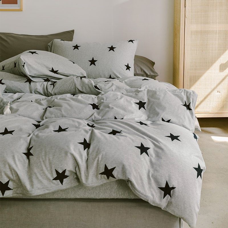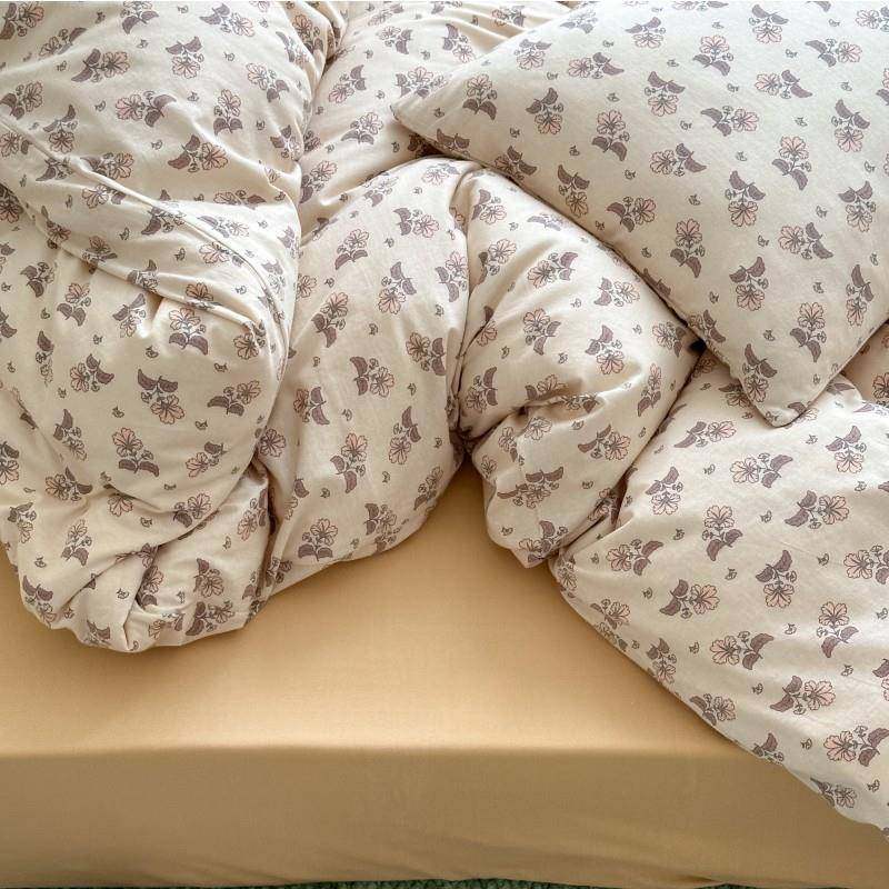 A类母婴级全棉针织棉简约韩系碎花天竺棉被罩裸睡亲肤床笠四件套