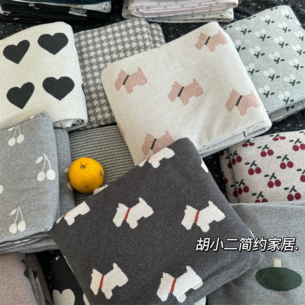 卡通可爱全棉色织针织棉提花被套枕套三件套秋冬季加厚天竺棉被罩