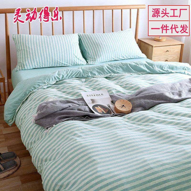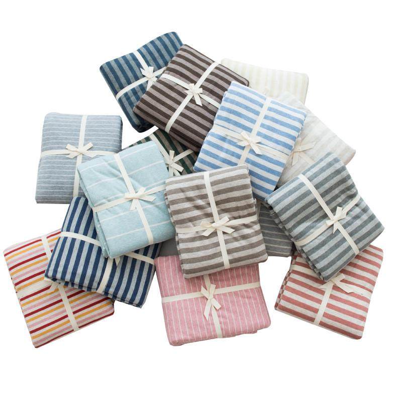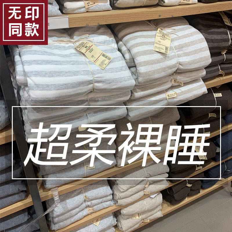 良品无印针织棉被套纯色条纹天竺棉被罩单人双人床单纯棉床笠被套