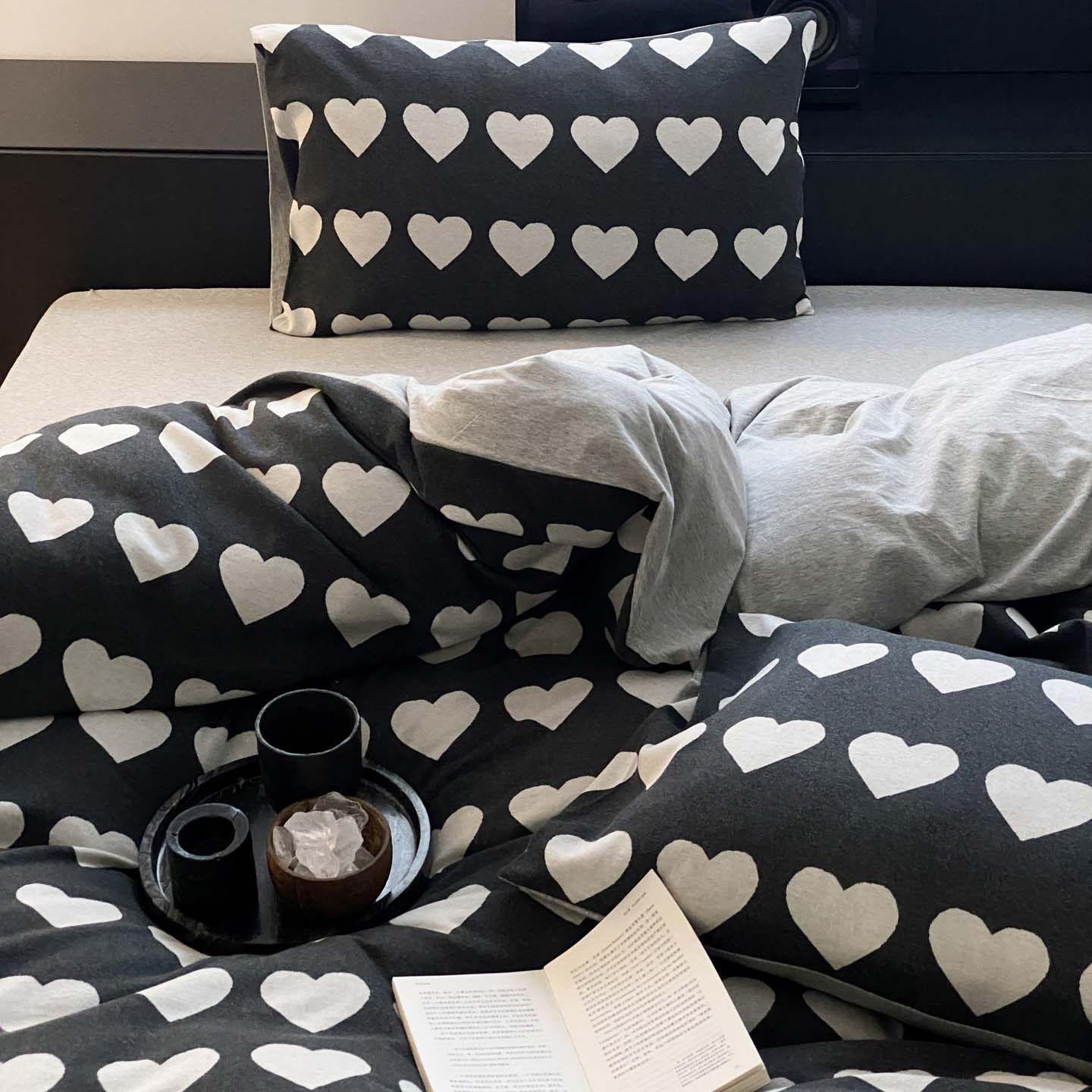 小小爱心全棉色织针织棉提花被套枕套三件套秋冬季加厚天竺棉被罩