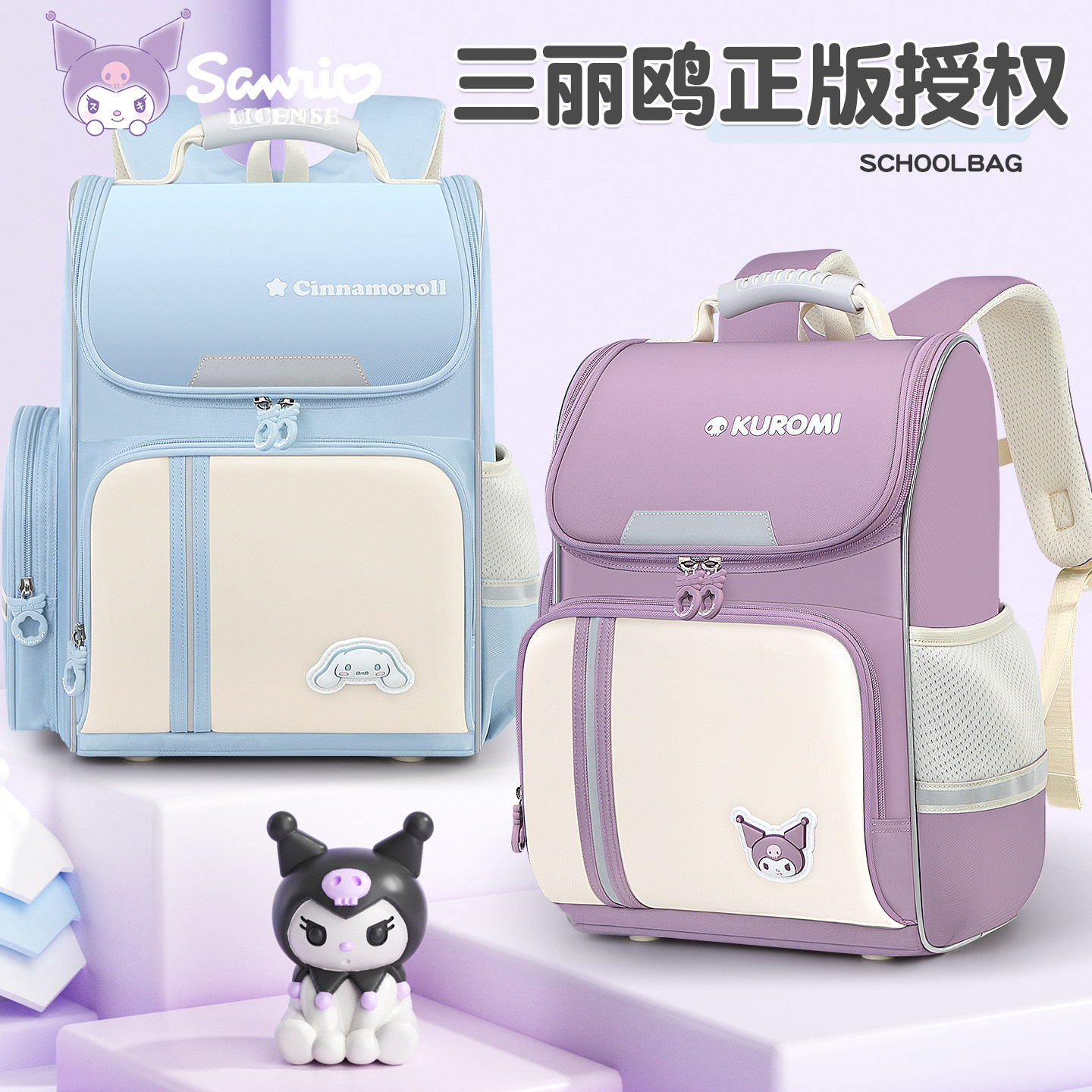 库洛米书包女生小学生新款一到六年级女童女孩儿童减负大容量背包