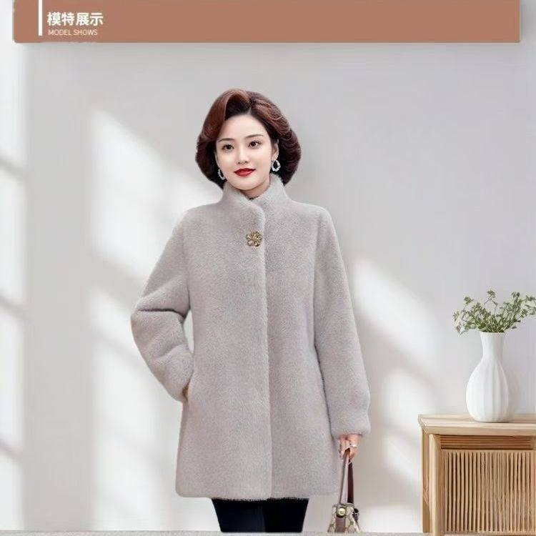 高端双面羊绒妈妈保暖时尚中长款大衣2025秋冬新款冬装加绒呢外套