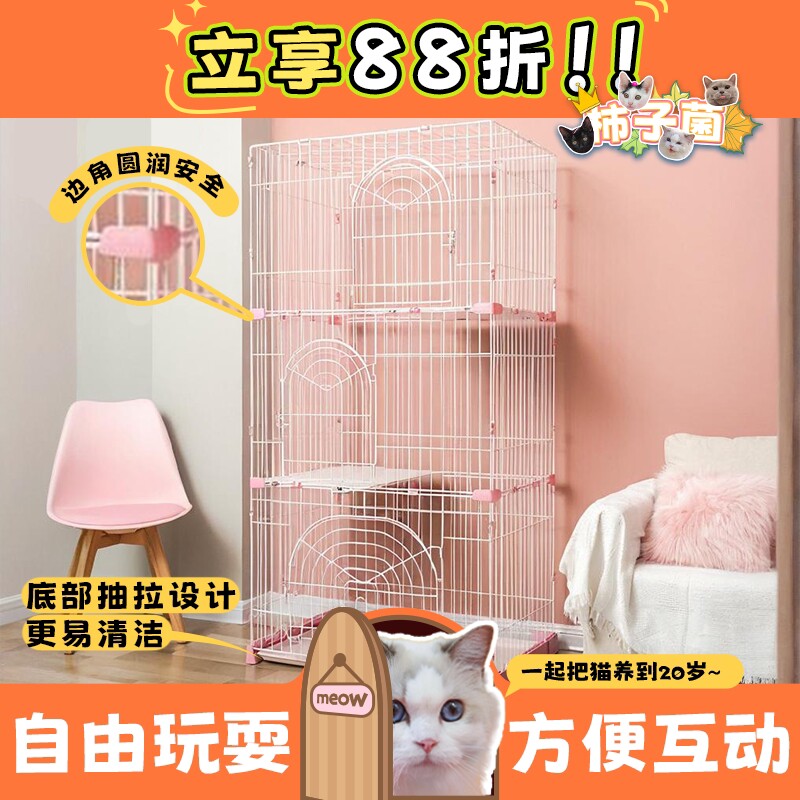 爱丽思猫笼子别墅宠物猫咪家用室内超大自由空间二三层猫舍爱丽丝