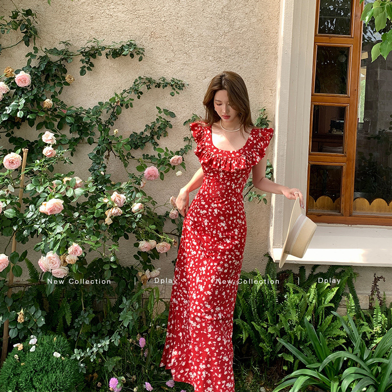 DPLAY红色连衣裙2026年新款海边度假女沙滩好看法式裙子长裙