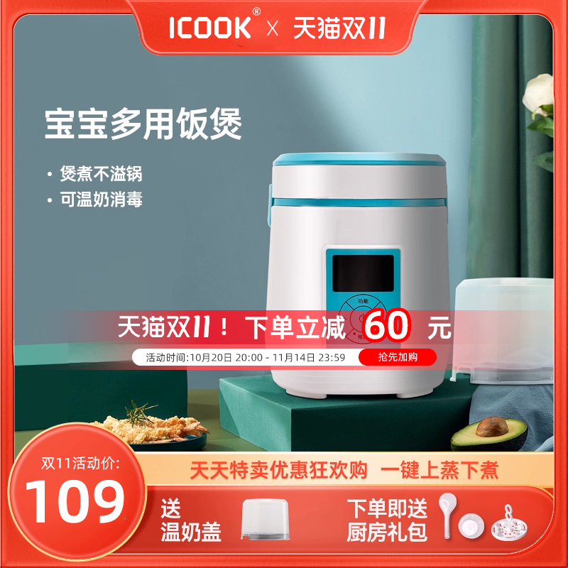 迷你电饭煲ICOOK官方正品1-2人迷你小型智能预约保温多功能mini煲