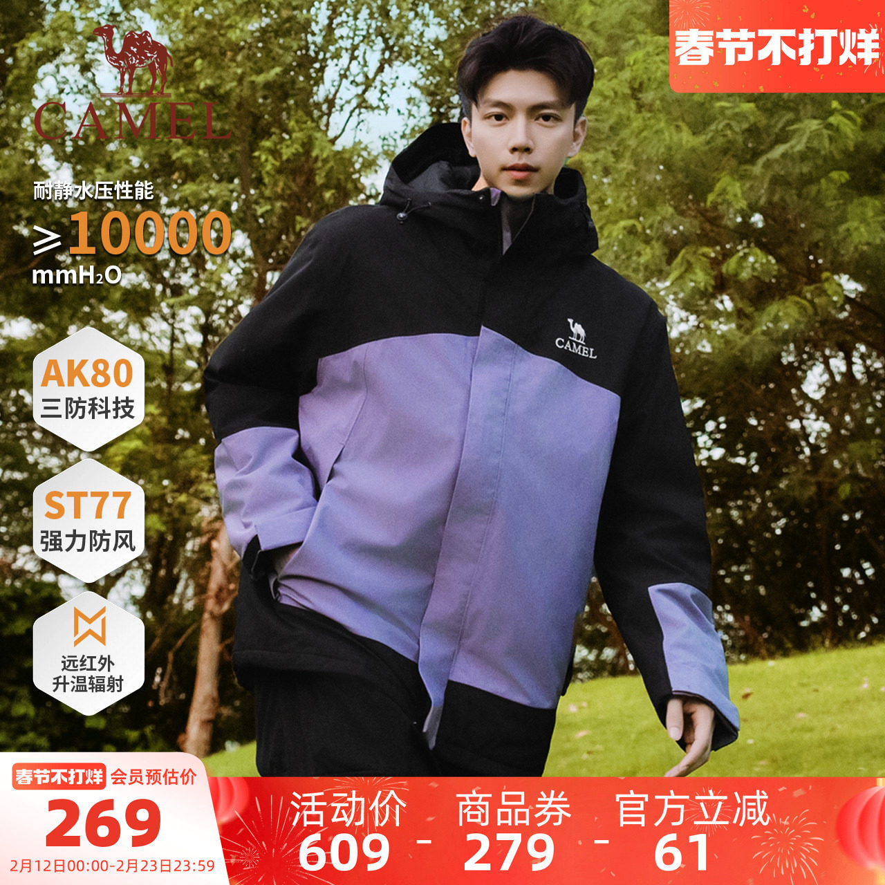 骆驼男装棉袄冬男进藏穿搭登山服AK80硬壳防水防风户外夹克外套
