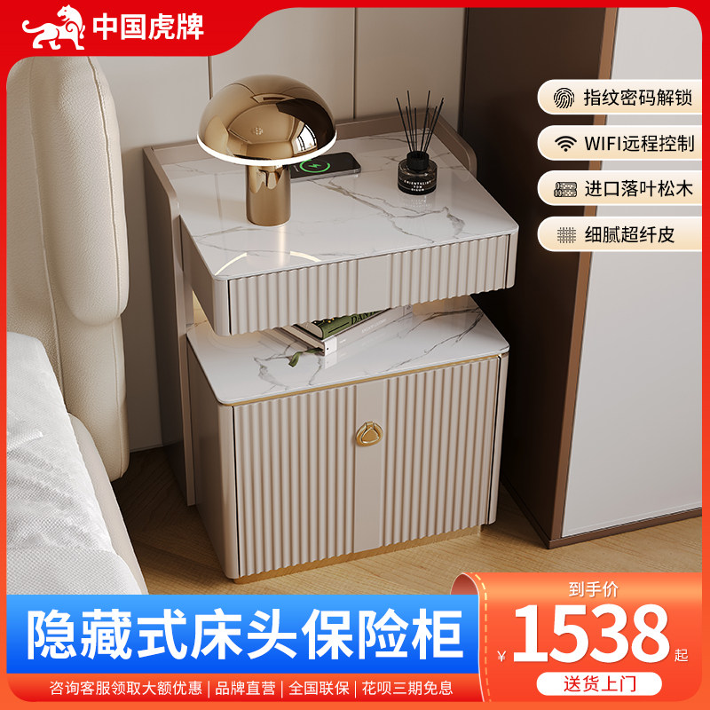 虎牌床头柜保险箱隐形防盗保险柜家用2025新款办公室小型密码柜指纹锁首饰盒双层无线充音响灯WIFI远程保管箱