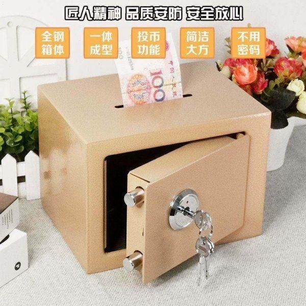 家用保险柜箱2023存钱罐钥匙锁不锈钢儿童密码箱大容量可取防摔