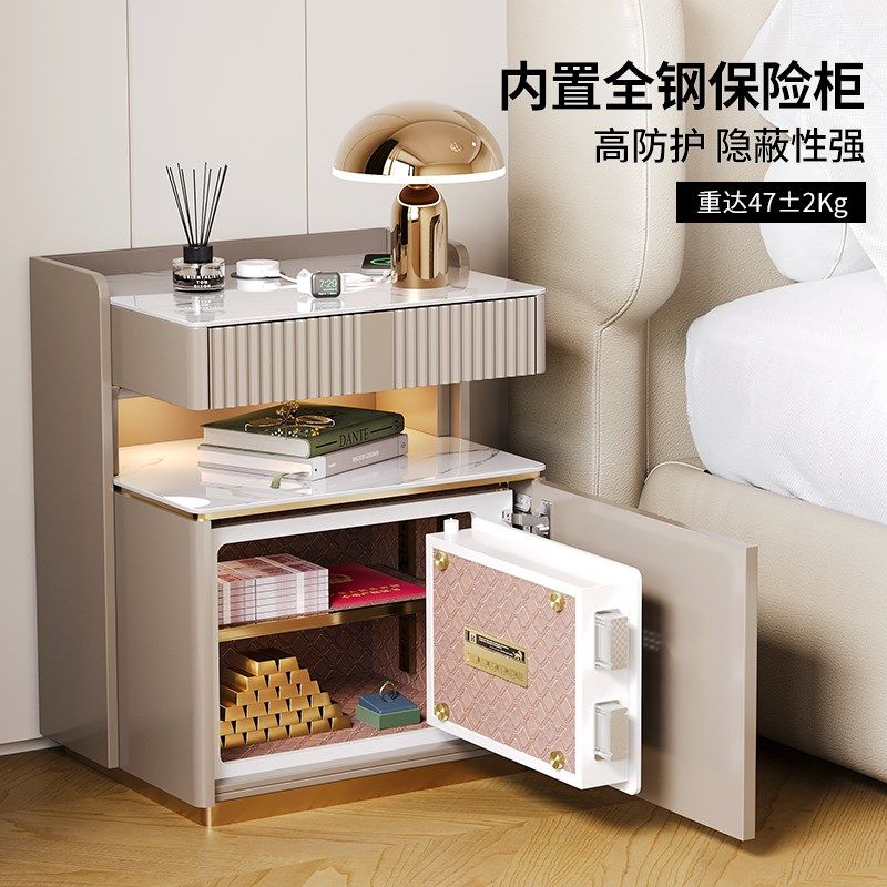智能实木床头柜保险箱一体简约家用卧室带锁轻奢高级感小型保险柜
