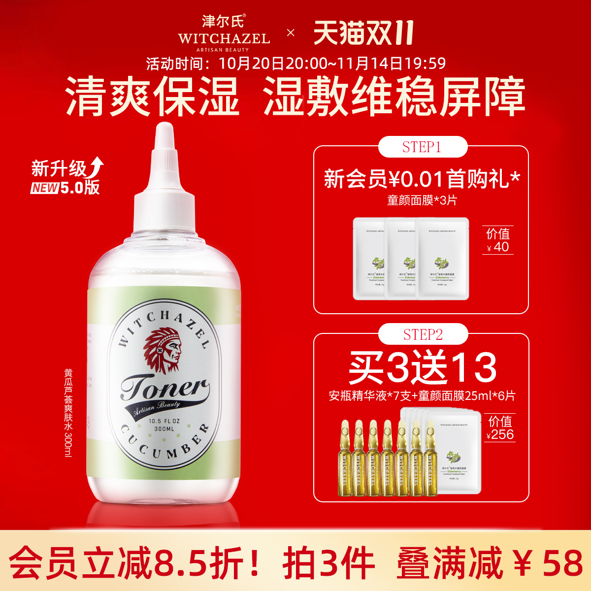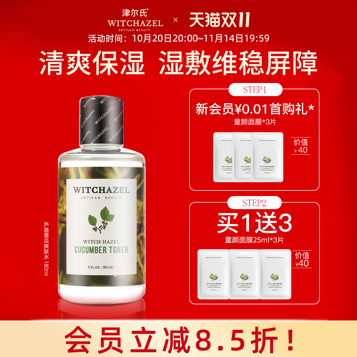 美国津尔氏金缕梅清爽型黄瓜芦荟爽肤水女温和保湿滋润补水湿敷水