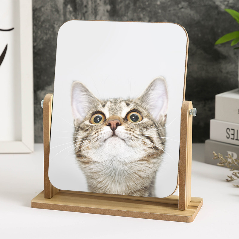 高颜值木质台式化妆镜子女可立折叠单面梳妆镜学生便携宿舍桌面镜