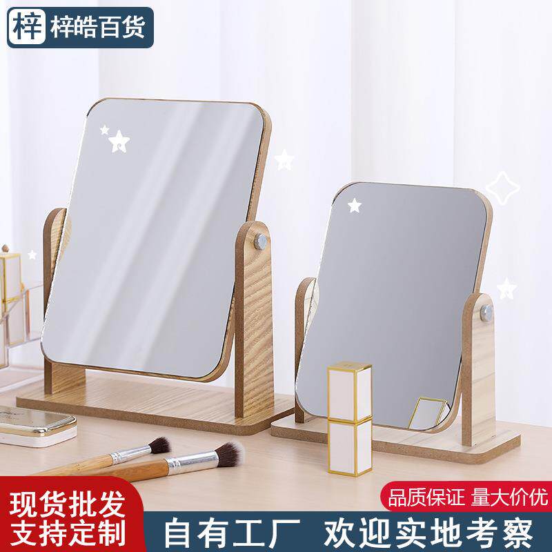 木质台式化妆镜子宿舍桌面美妆镜便携大号学生镜子高清旋转梳妆镜