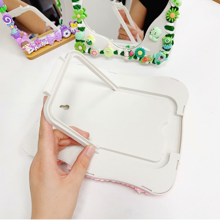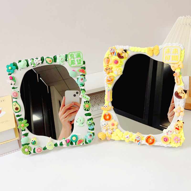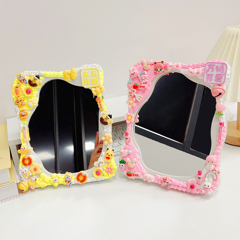 diy奶油胶立体塑料异形桌面台式化妆镜子大耳狗草莓熊材料包手工