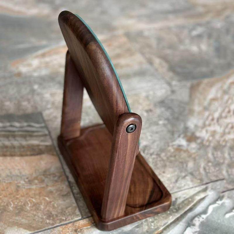 北美黑胡转木化妆镜木质旋234台式化妆镜子高清便携复风化桃妆古