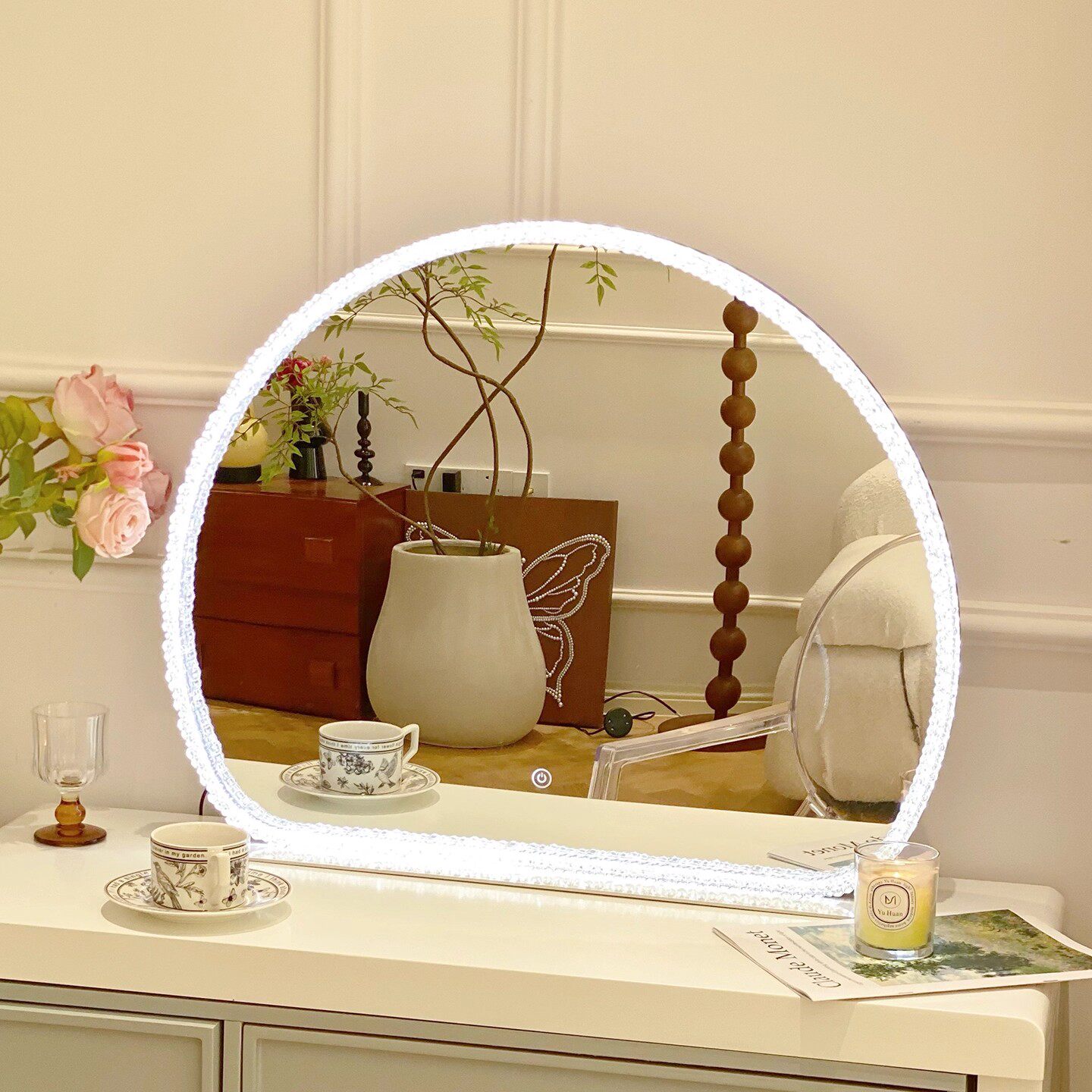 半圆化妆镜简约款触摸带灯梳妆镜卧室台式化妆镜子家用智能美妆镜