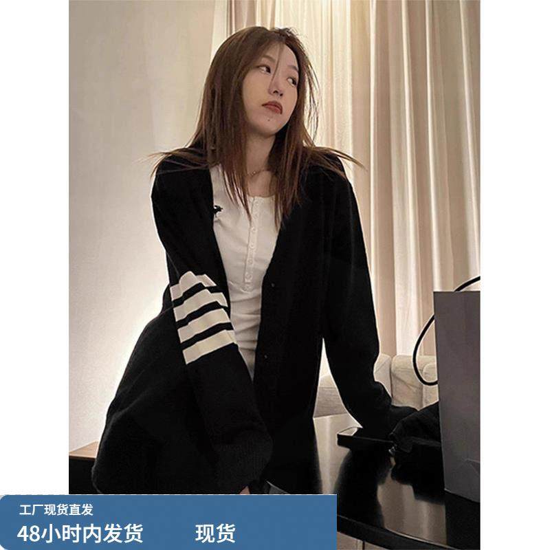 唐狮极简文艺氛围中长款开衫外套女新款春季黑色百搭毛衣qdTD