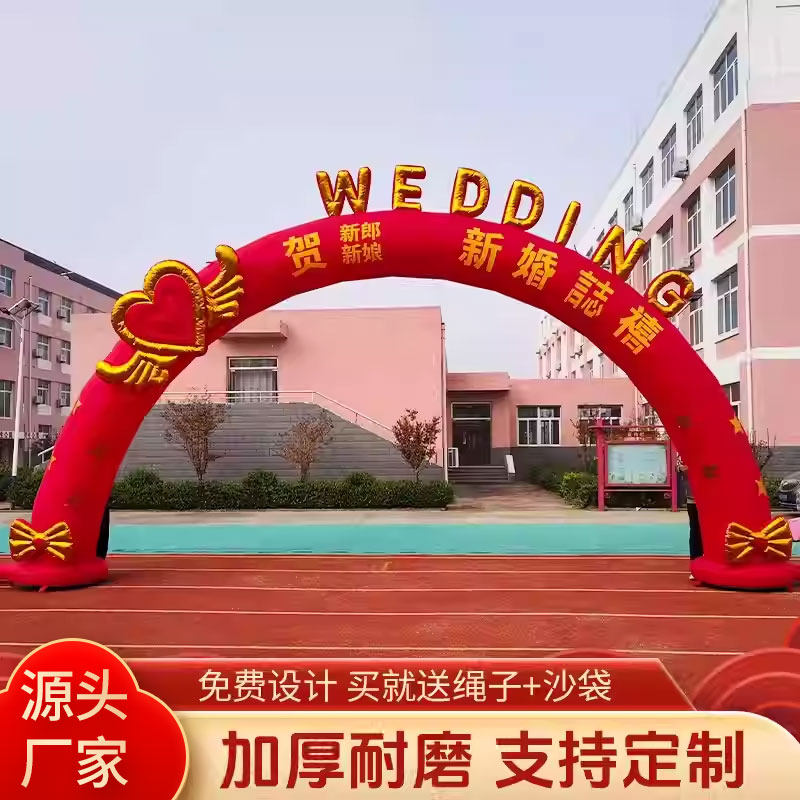 结婚拱门彩虹门气拱门红金新郎新娘龙凤庆典充气开业气模婚庆拱门