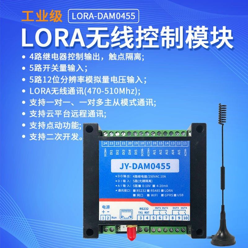 LORA-0455远程控制继电器模拟量采集免布线无线通信模块lora透传