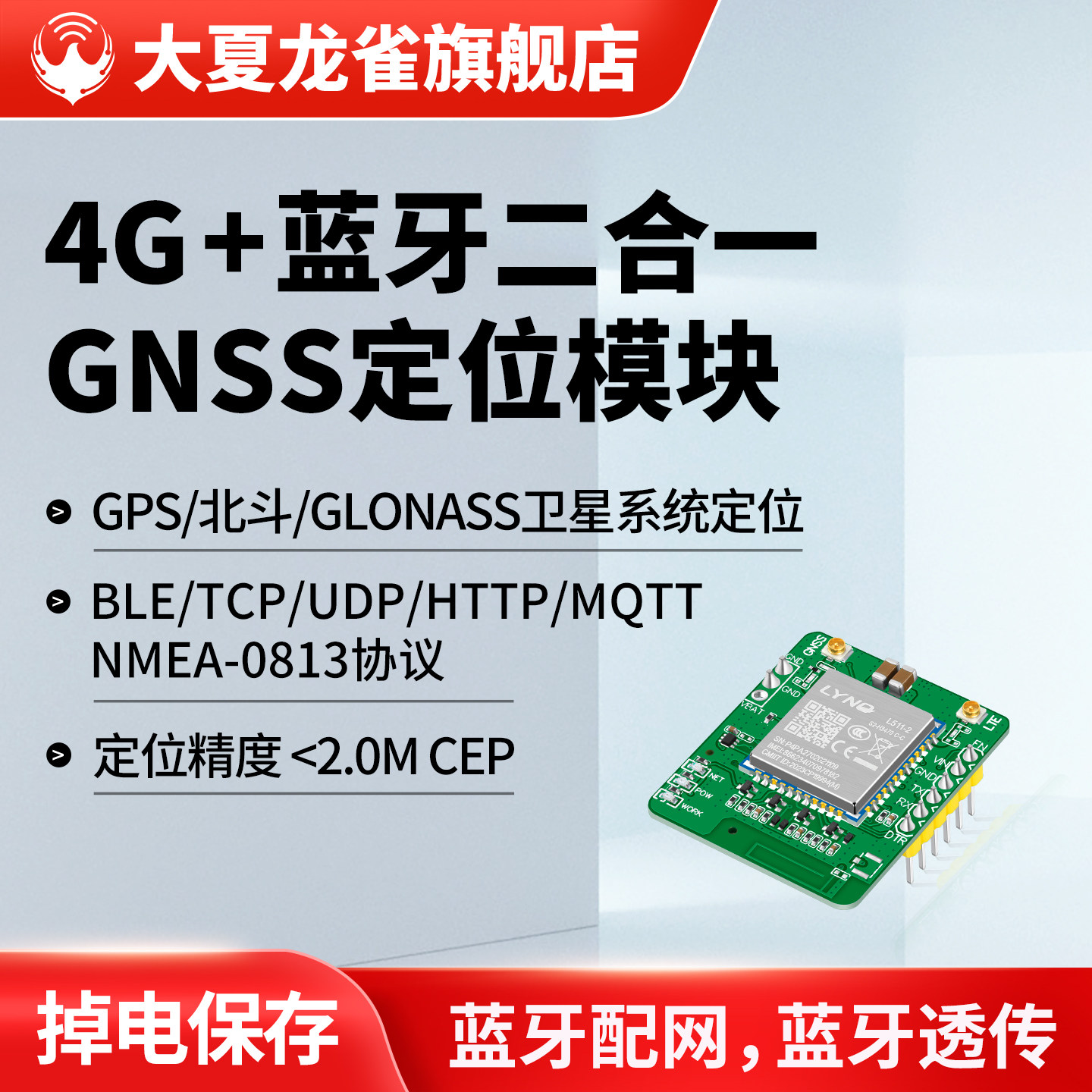 大夏龙雀4G蓝牙无线通信模块GNSS定位全网通物联网透传输TCP/MQTT