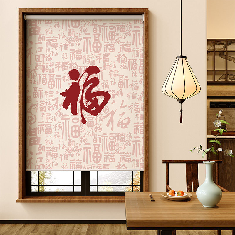 新中式卷帘窗帘厨房卫生间防走光遮挡帘卧室窗户防晒遮阳帘免打孔