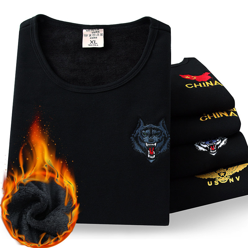 军强冬加绒修身加厚保暖迷彩刺绣狼头特种兵T恤长袖男体能训练服