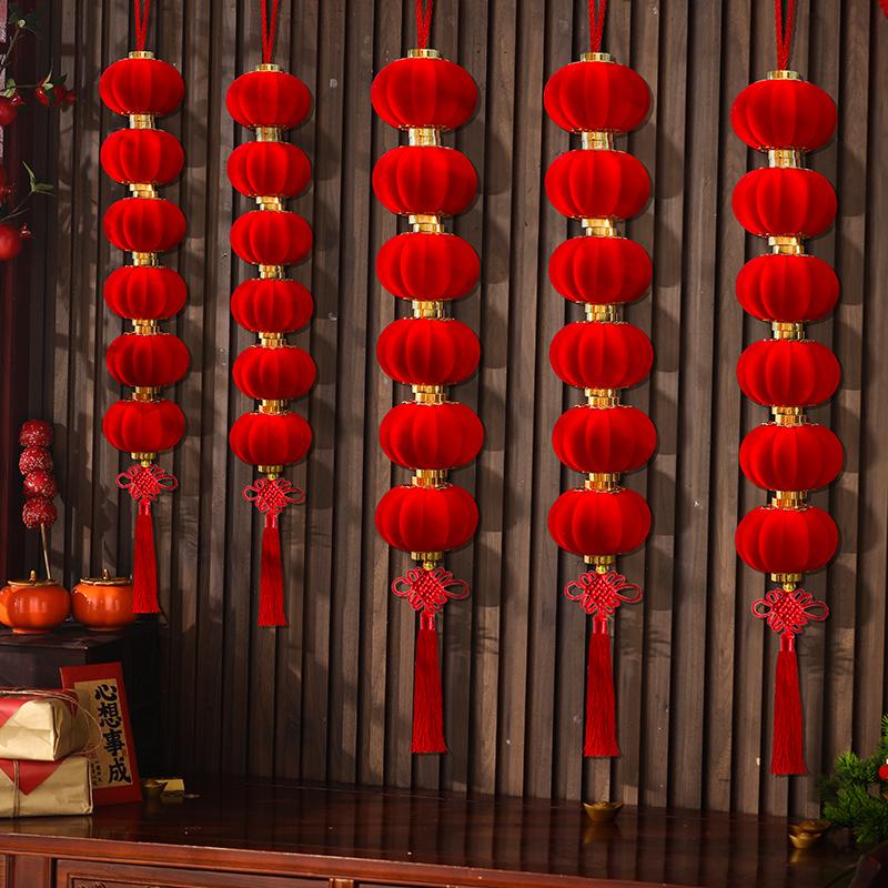 2026新年植绒连串灯笼新春户外商场过年春节创意灯笼马年喜庆装饰