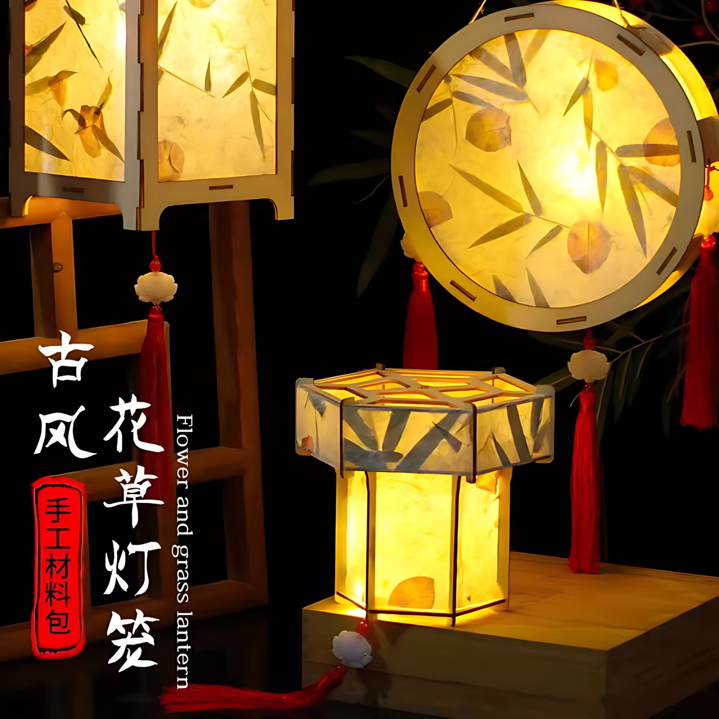 过年古风创意灯笼儿童手工diy材料包汉服花草纸花灯灯笼自制发光
