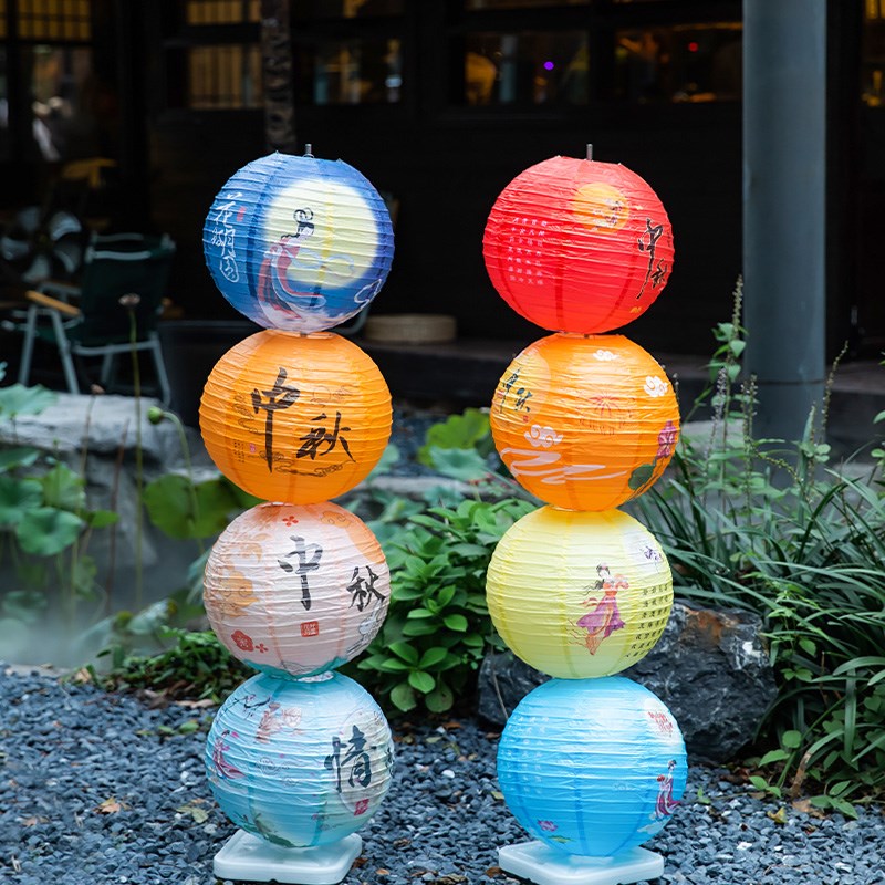 2024中秋节装饰品创意灯笼立柱摆件古风民宿主题氛围布置拍照道具
