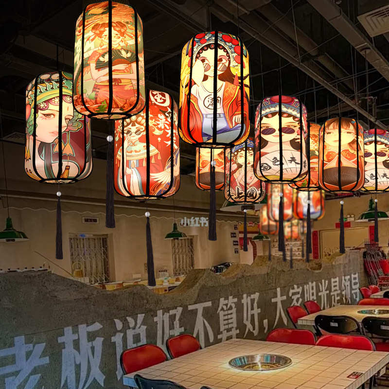 潮火锅店元旦防晒中式防雨国创意灯笼方形灯笼餐厅春节风吊灯古风