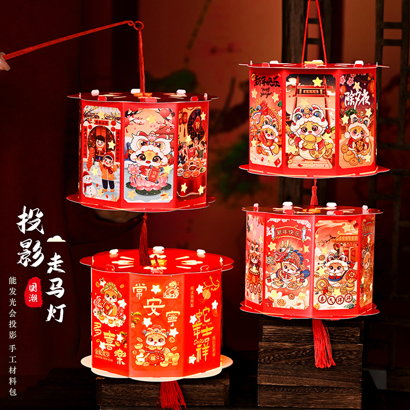 2025年新款蛇年纸质灯笼手工diy古风传统创意灯笼玩具投影走马灯
