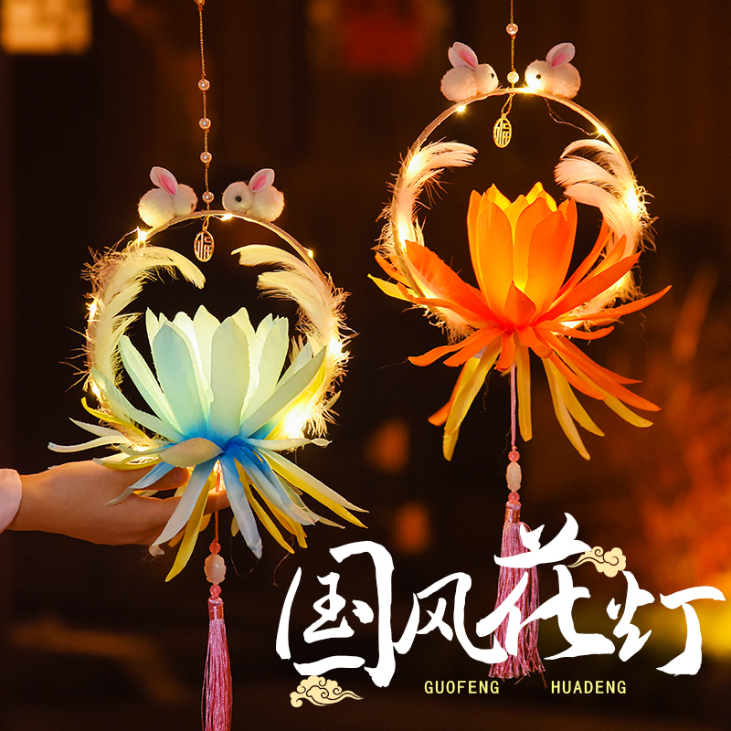 中秋莲花灯兔子灯笼国庆手提灯笼diy手工材料包古风创意灯笼挂饰