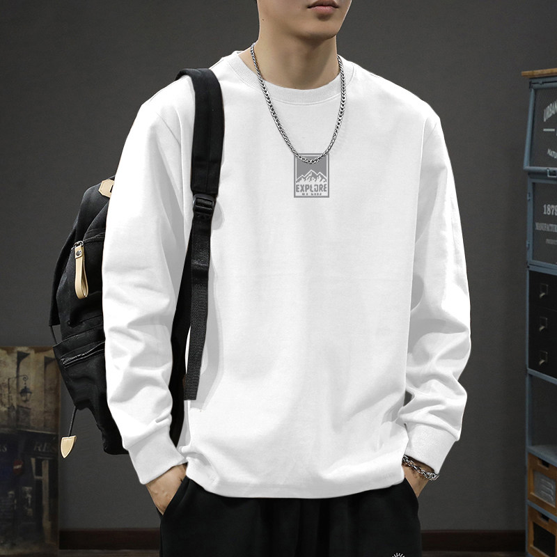 打底衫男装长袖白t恤220g纯棉圆领嘻哈潮流青年宽松大码体恤纯色