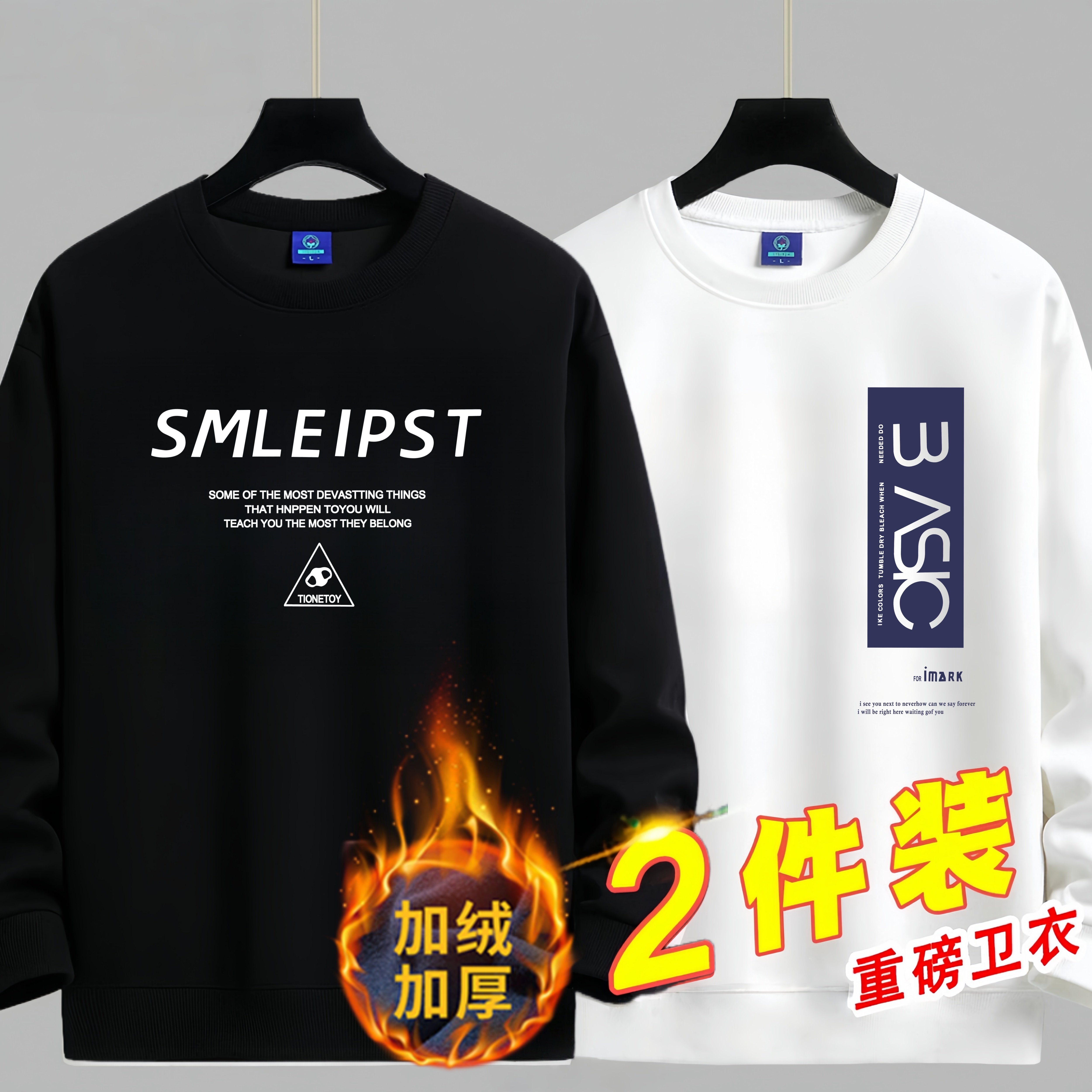 25款秋冬季男士卫衣宽松圆领加绒加厚保暖重磅长袖大码青年打底衫