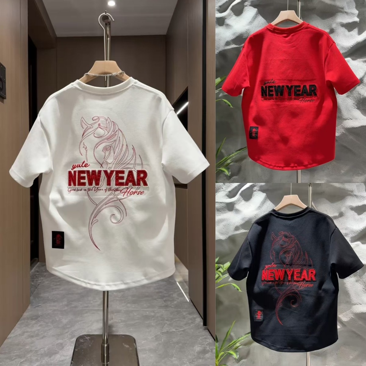 2026春季新年款潮牌短袖男士百搭休闲套头T恤马年半袖青年打底衫