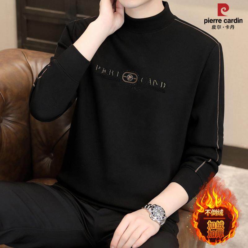 皮尔卡丹冬季专柜加绒加厚保暖卫衣男士半高领保暖中青年打底衫潮