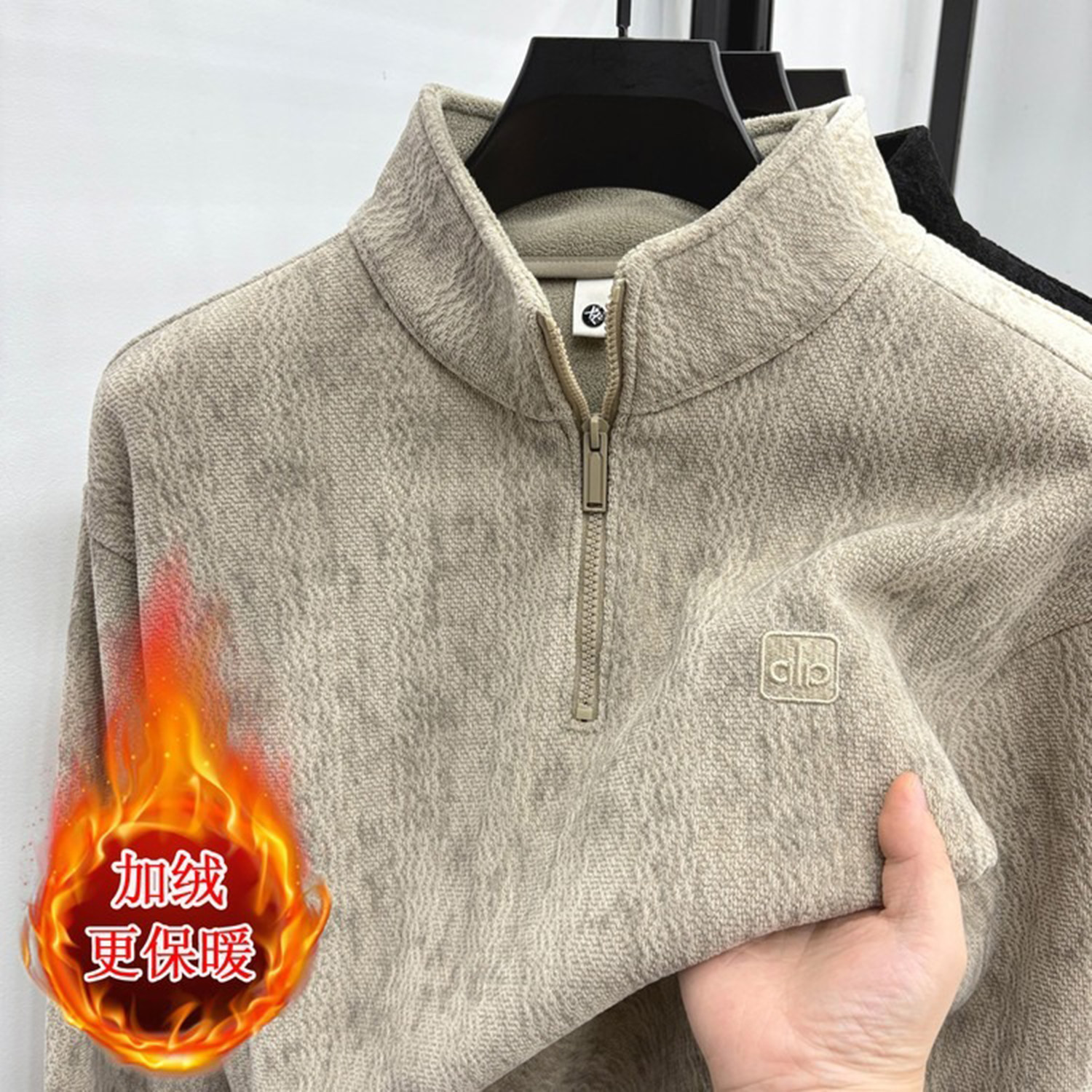 加绒保暖冬季半拉链立领卫衣男新款时尚休闲款式加厚中青年打底衫