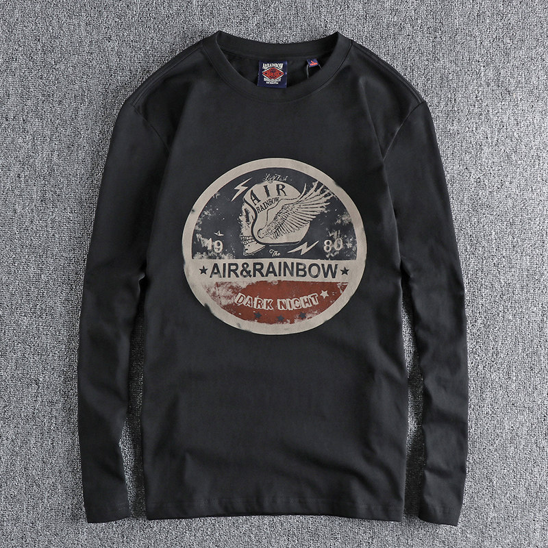 复古美式潮流骷髅机车印花长袖T恤男 舒适圆领休闲百搭青年打底衫