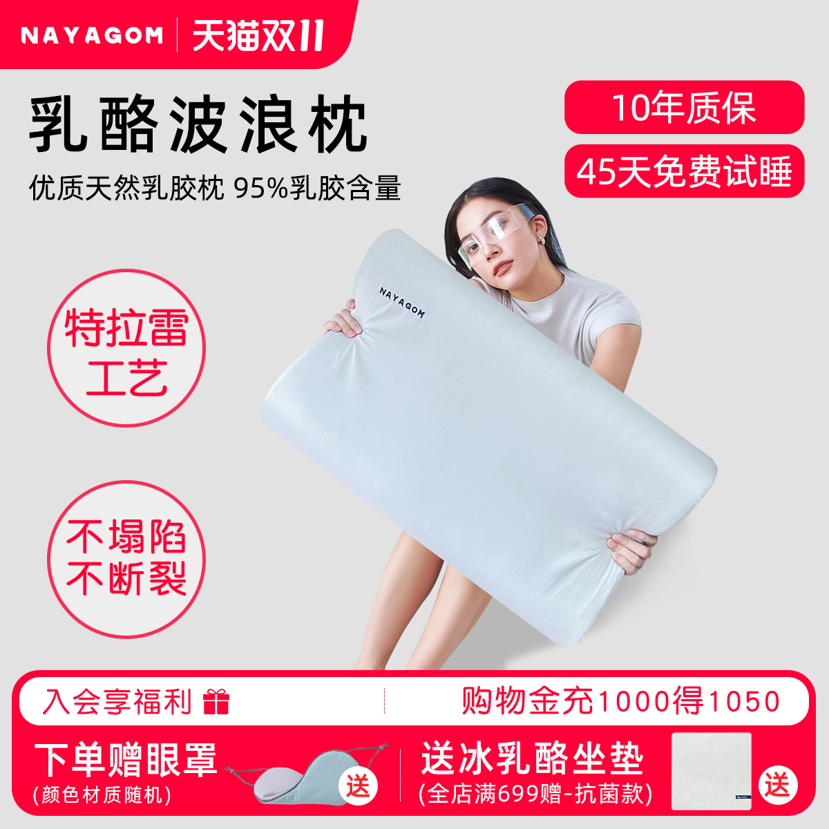 NAYAGOM/楠伢宫特拉雷乳酪波浪枕乳胶枕芯助睡眠护颈椎枕头NYG