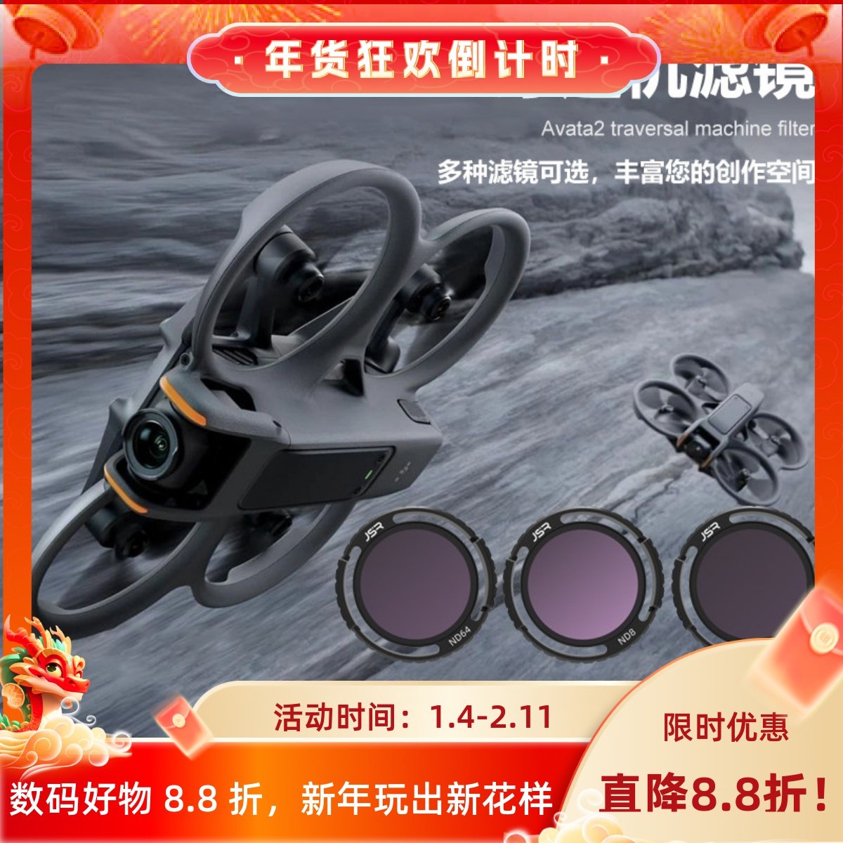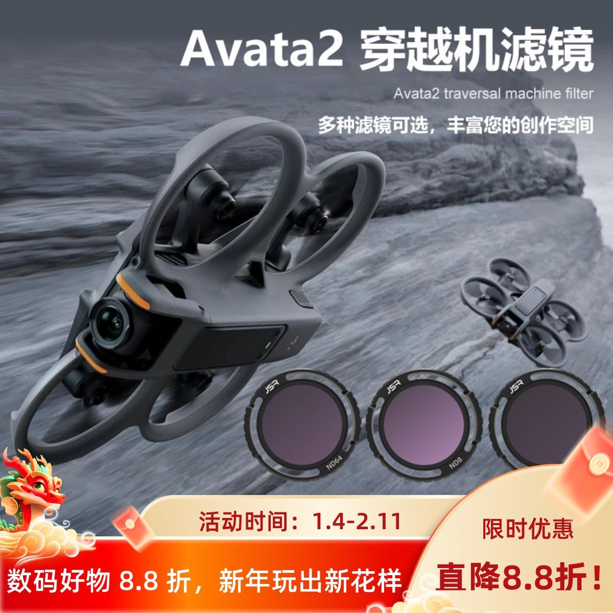 适用DJI avata2穿越无人机滤镜套装o4 pro图传UV保护减光镜头配件