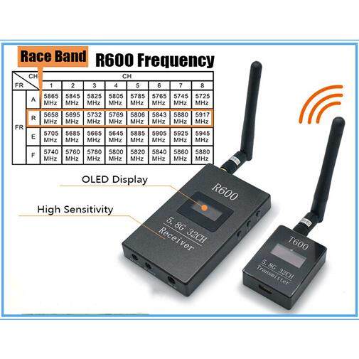 5.8G600mw图传套装T600+R600无线发射传输系统LED显示R频点.