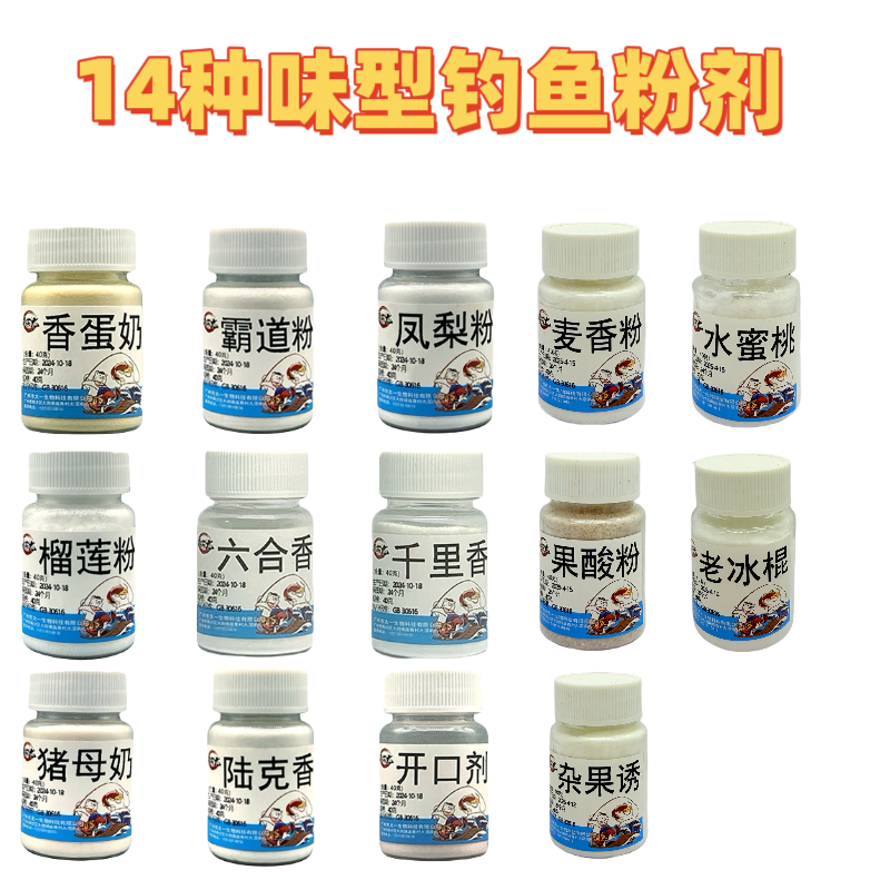 台湾101钓鱼小药鱼饵添加剂陆克香六合香蛋奶粉鲤果酸香王开胃粉