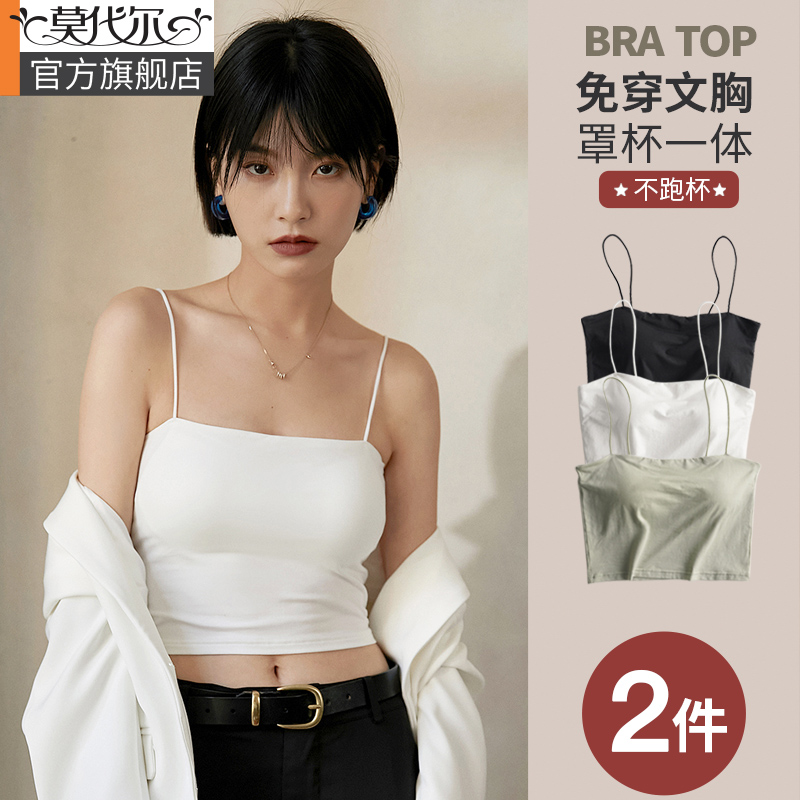 莫代尔棉无钢圈吊带背心免文胸bra带胸垫抹胸内衣裹胸防走光打底