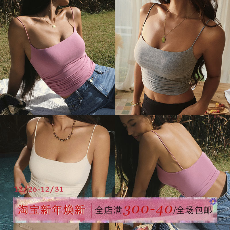 25夏季细带吊带背心打底衫内搭ins欧美风外穿无钢圈带胸垫抹胸女