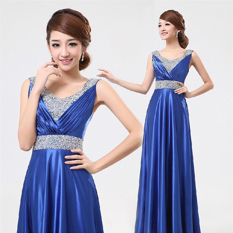 星空晚礼服新款蓝色长款亮片伴娘团气质年会姐妹显瘦主持宴会优雅